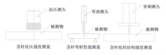 1、三種不同測頭:可進行莖稈彎折性能測量、莖稈抗壓強度測量、莖桿組織結構(穿刺)強度測量;